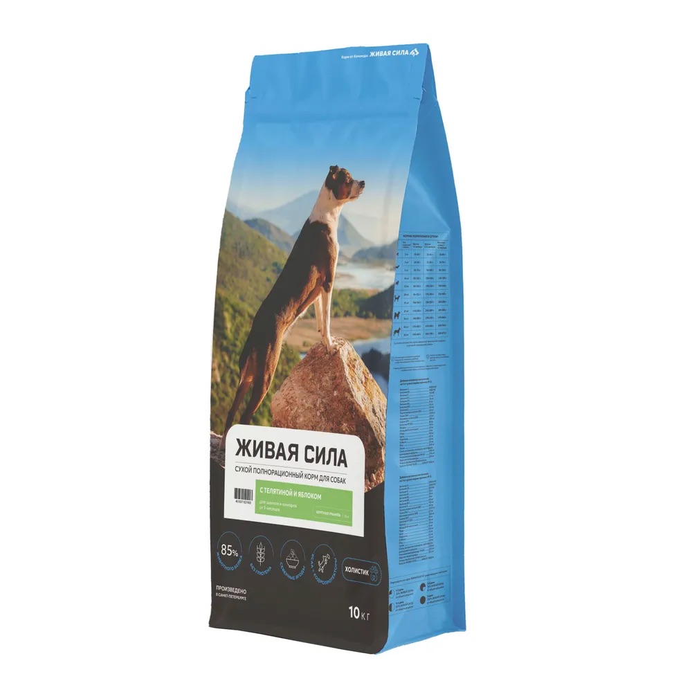 Живая Сила сух.п/рац.корм с телятиной и яблоком д/щенков и юниоров с 3 мес. круп.гр. 10 кг